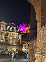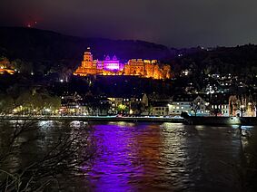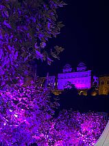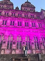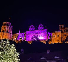 Das Schloss Heidelberg strahlt in Pink gegen Brustkrebs.